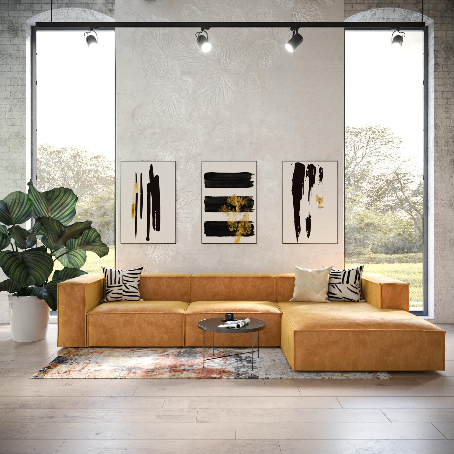 - Modulares Sofa Sewilla (4-Sitzer) mit Pouffe in Kord-Beige