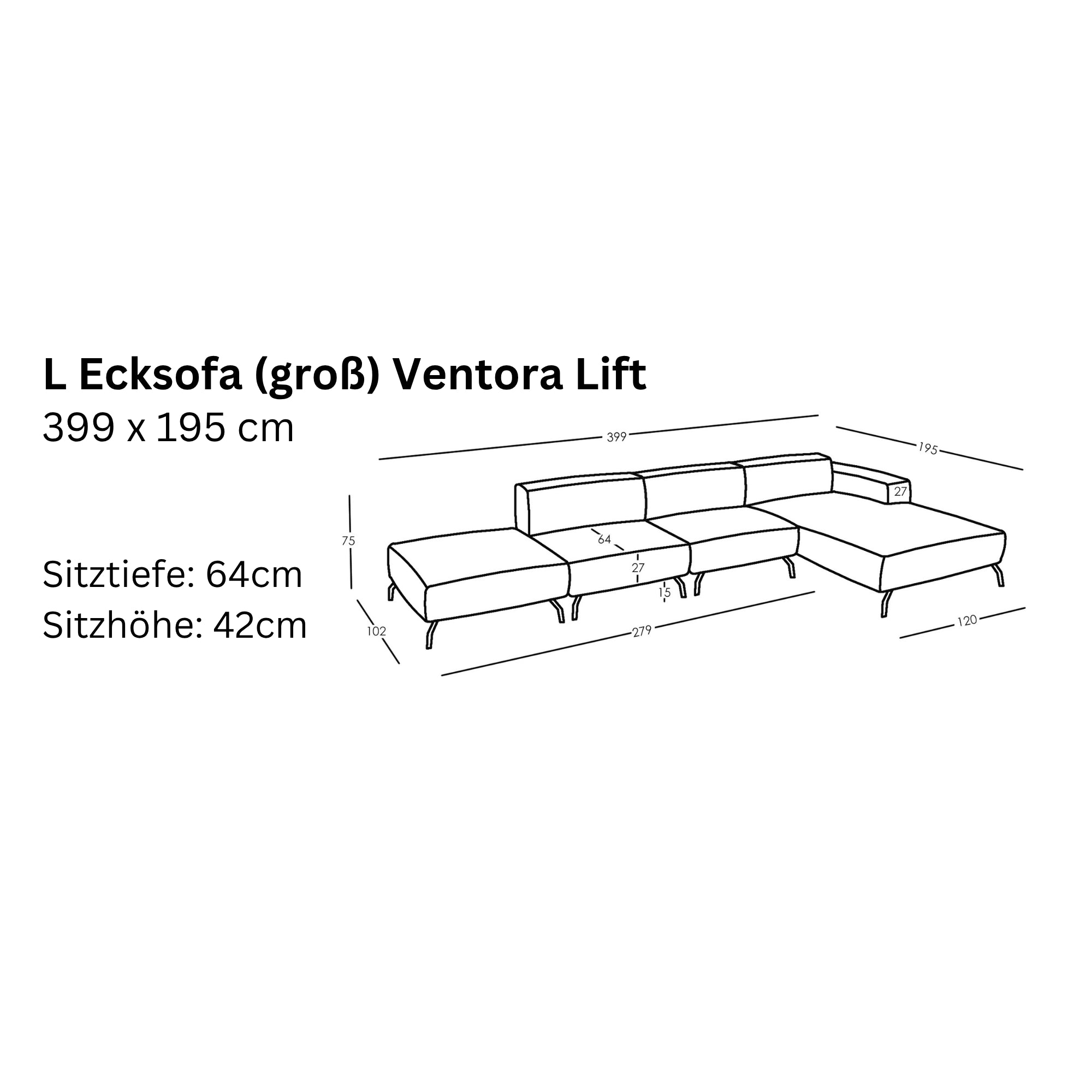 Modulares L Ecksofa Ventora Lift (groß)